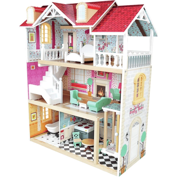 Großes, dreistöckiges Puppenhaus aus MDF, PP und ABS, mit Treppe, Aufzug und