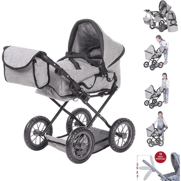 knorr toys® Puppenwagen Ruby – “stone black” grau