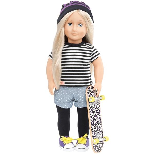Auf die Bretter und los! Skateboarden ist super – und mit diesem coolen Outfit auch noch richtig stylisch! Dieses Outfit kann beliebig mit anderen Our Generation Kleidungsstücken kombiniert werden – so finden deine Puppen ganz leicht ihren eigenen Lieblingsstyle!Inhalt: 1 T-Shirt, 1 kurze Hose, 1 Mütze, 1 Strumpfhose, 1 Paar Schuhe, 1 Skateboard Größe Produkt (cm): x x Größe Verpackung (cm): 26,92 x 21,59 x 4,45