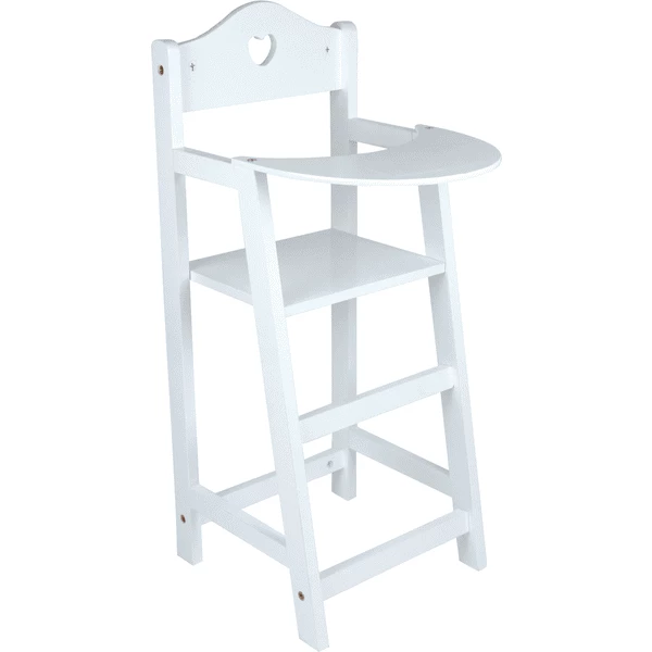Ein schicker Puppenhochstuhl, der in der Farbe Weiß lackiert und mit kleinem